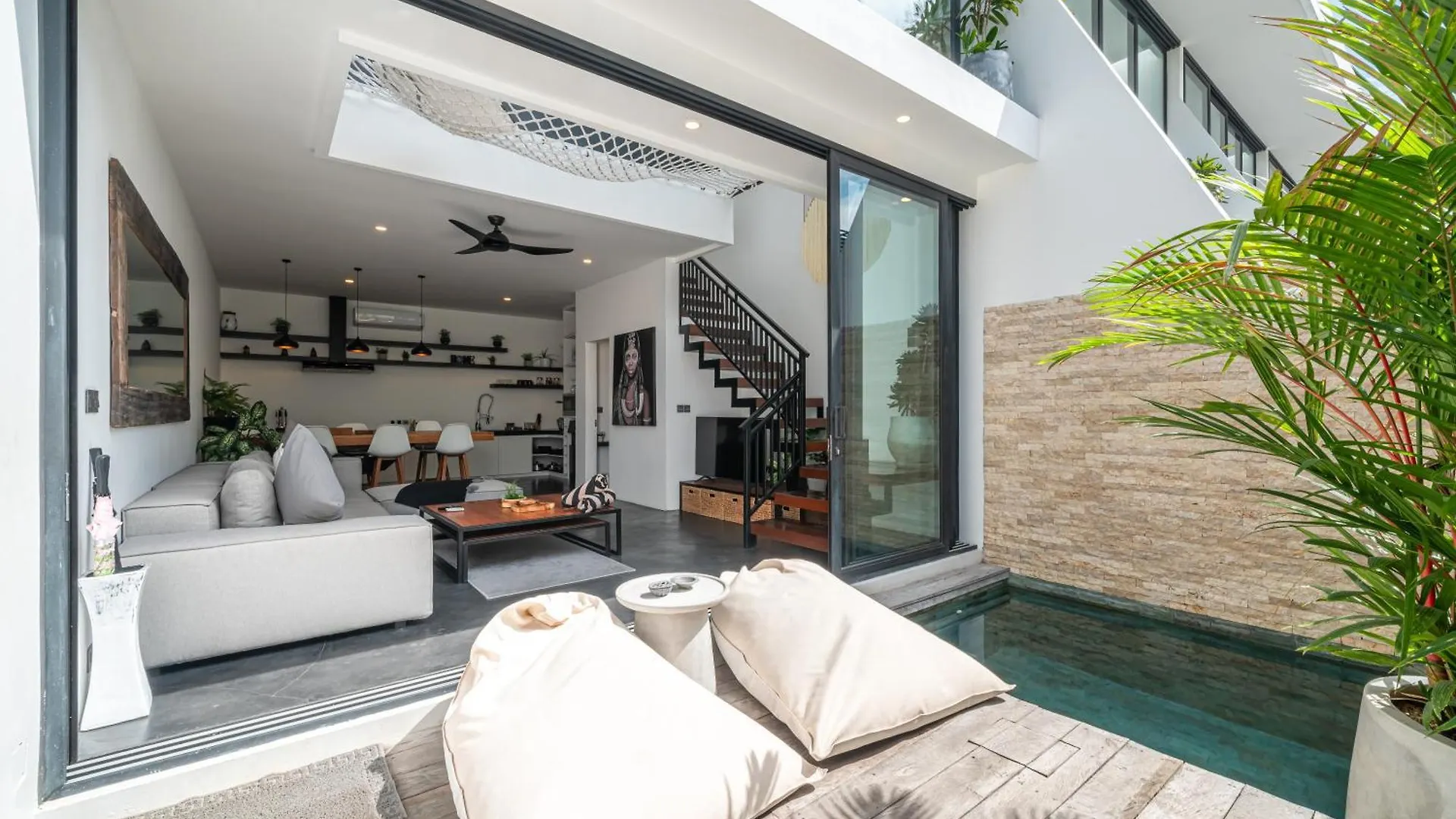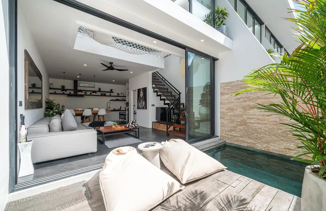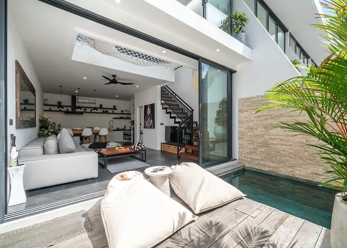 Die Ferienwohnung Loft Erika - Elegant 1-bdr luxury loft in GREAT LOCATION ! Canggu liegt in 5 Fußminuten Entfernung vom Semat Sari Markt und ist 20 km vom Flughafen Ngurah Rai entfernt. Dieses einladende Apartment im Viertel Berawa verfügt über eine Terrasse mit Blick auf den Pool.
